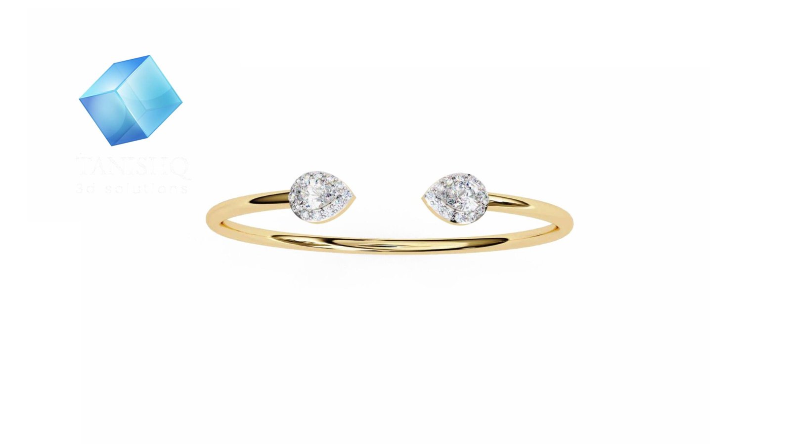 This contemporary open bracelet blends minimal design with timeless elegance. Crafted in radiant gold, it features two delicately sculpted teardrop motifs, each adorned with shimmering diamonds that catch the light beautifully. The open-ended silhouette offers a modern edge while ensuring comfortable wear, making it perfect for both everyday styling and special occasions. Elegant on its own yet effortless to layer, this bracelet is a graceful expression of understated luxury.